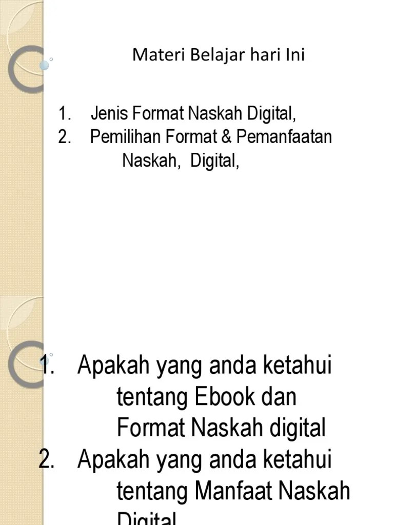 Jenis Format Naskah Digital / Format Audio Dan Video Yang Dapat Diputar Pada Buku Digital Habibullah Al Faruq / Azw (amazon world) · 2.. Mobi (format mobipocket) · 5. Berdasarkan bentuk naskah digital yang merujuk pada jenis buku digital yang ada berikut adalah berbagai jenis format naskah digital: Carilah artikel di internet tentang 3 jenis format buku digital yang sedang banyak digunakan! Saat mengekspor buku, anda dapat memilih jenis sampul yang . Epub adalah format file standar terbuka untuk buku digital yang dikembangkan.